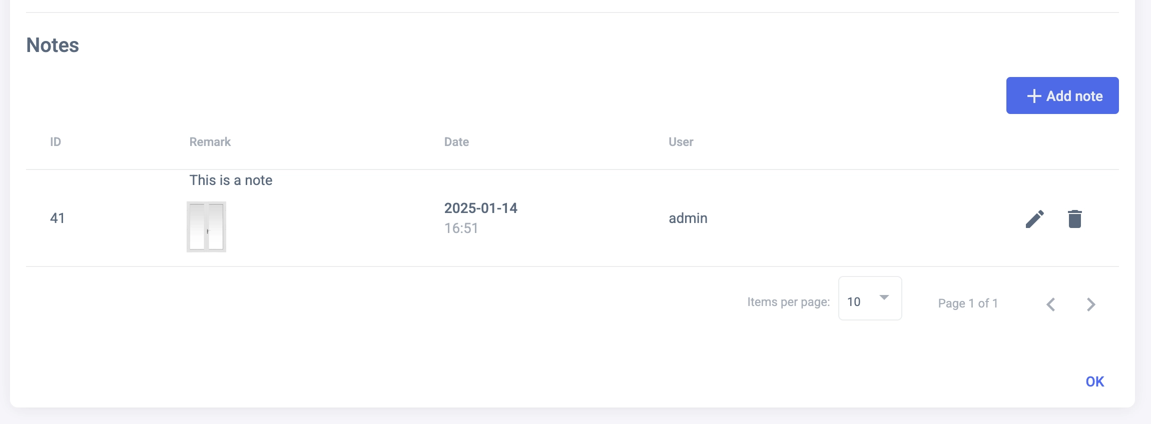 To add a note, click the “Add Note” button. This will open a modal window where you can write your note.