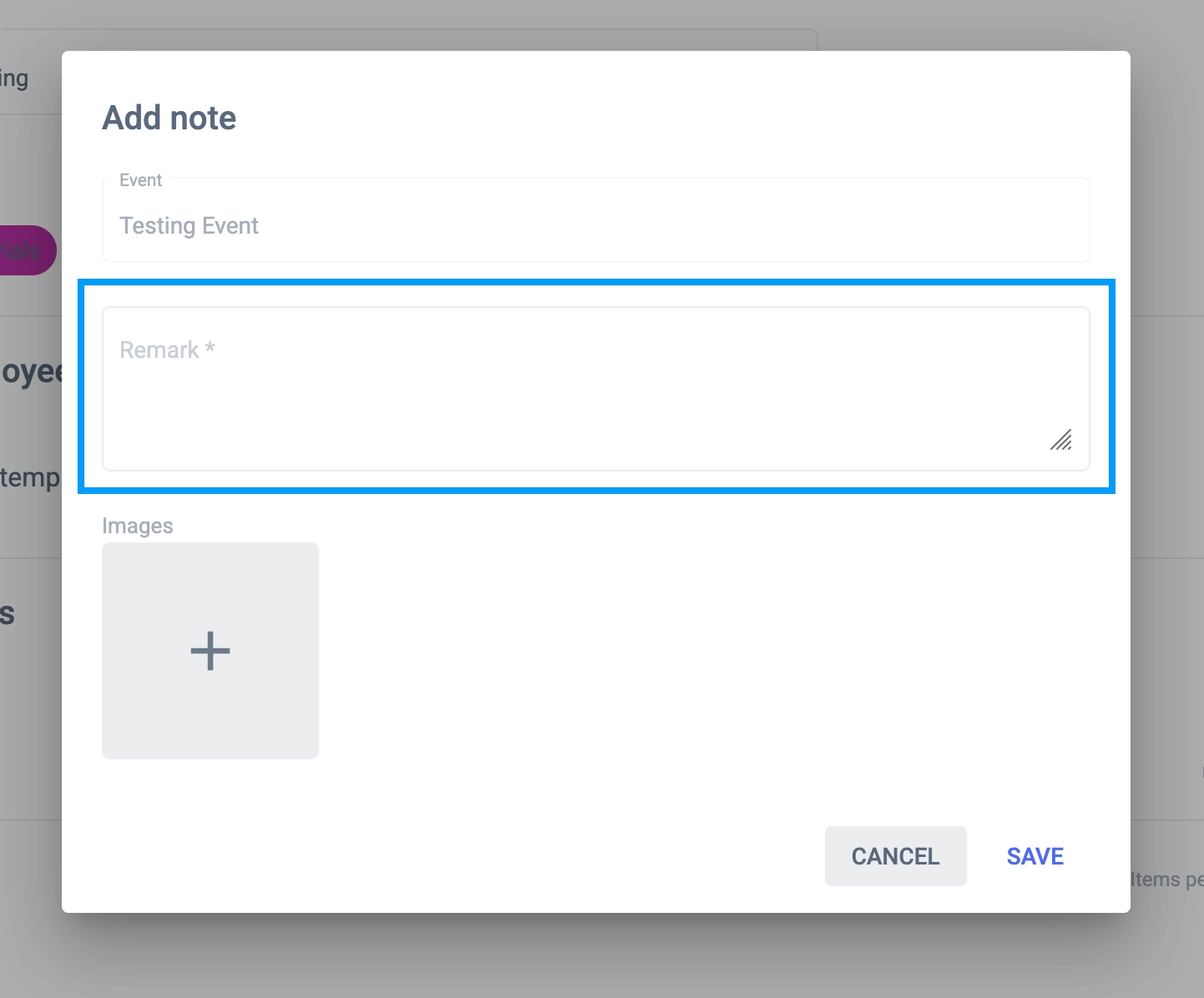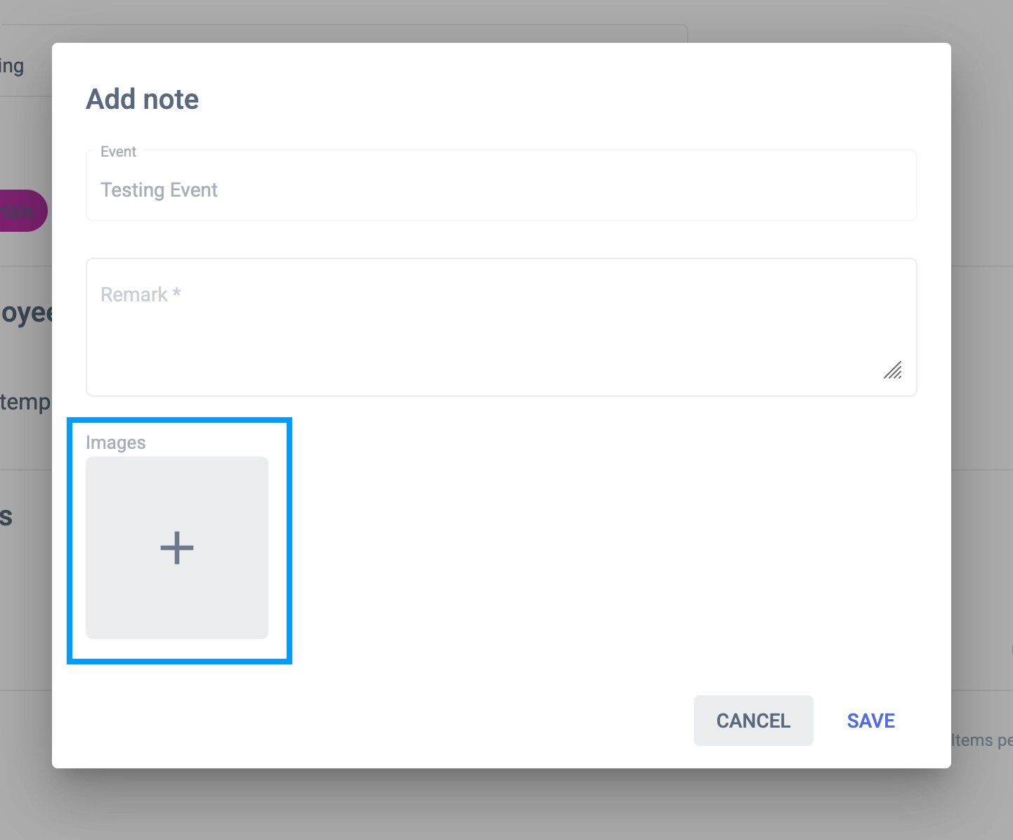 You can also add images to your notes. To do this, click the ”+” button. This will open a modal window where you can upload an image from your device.
