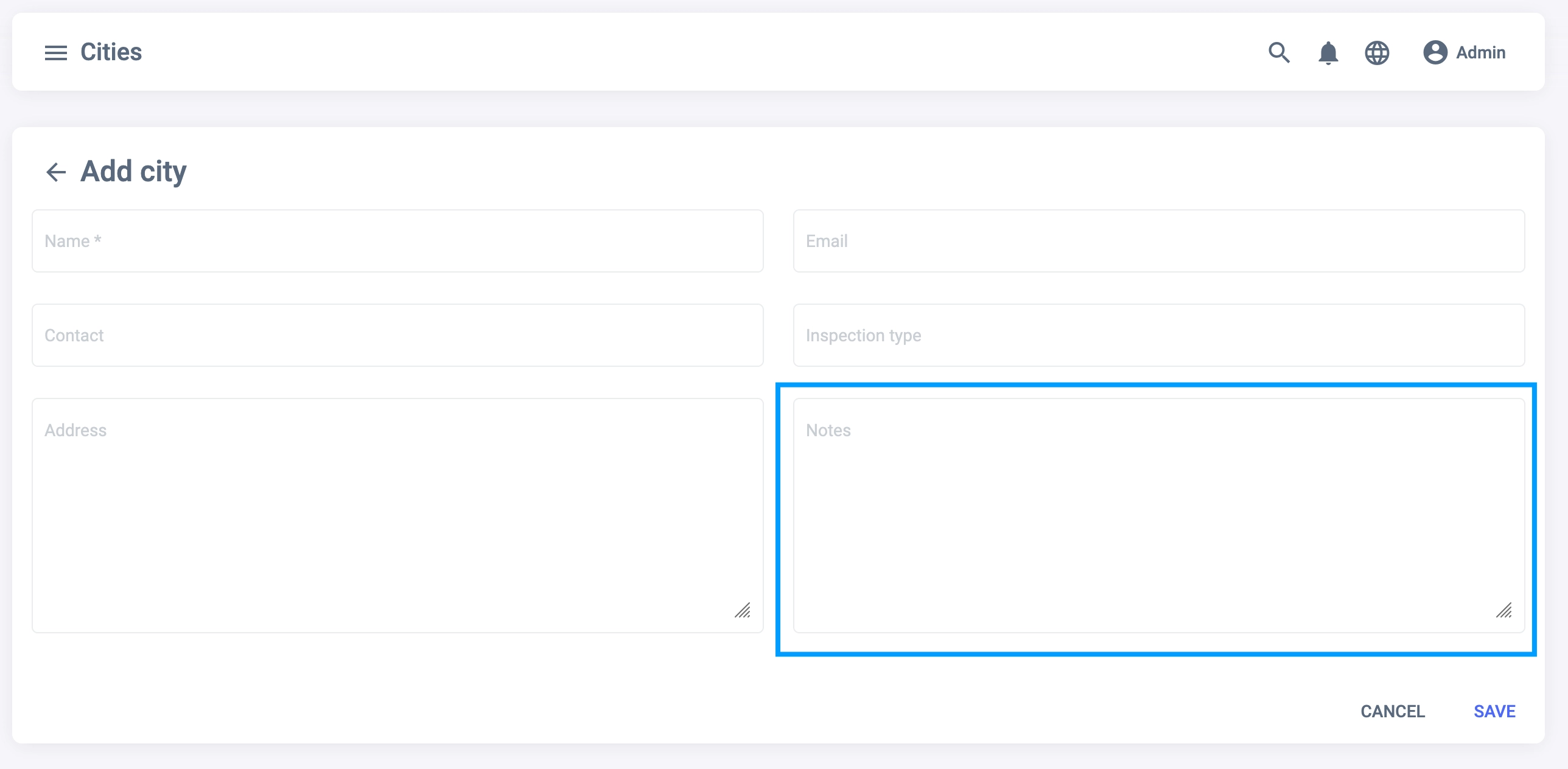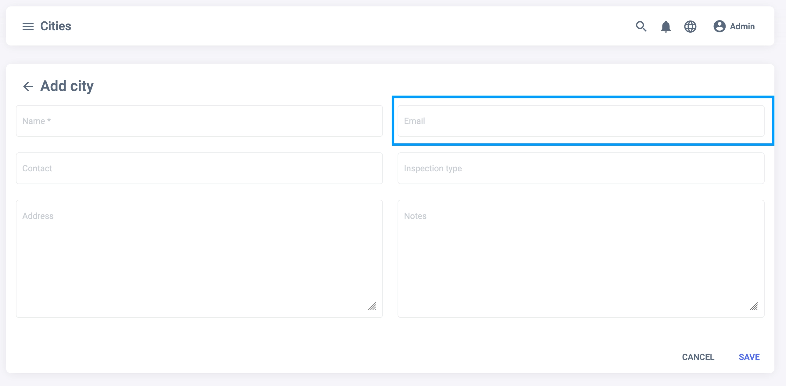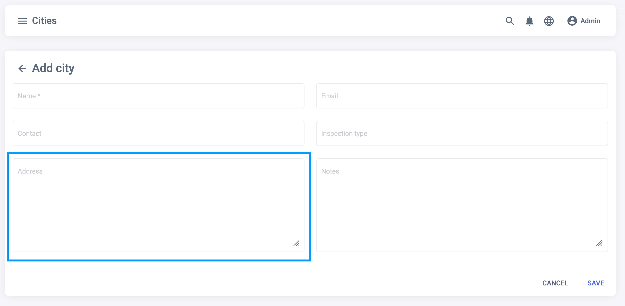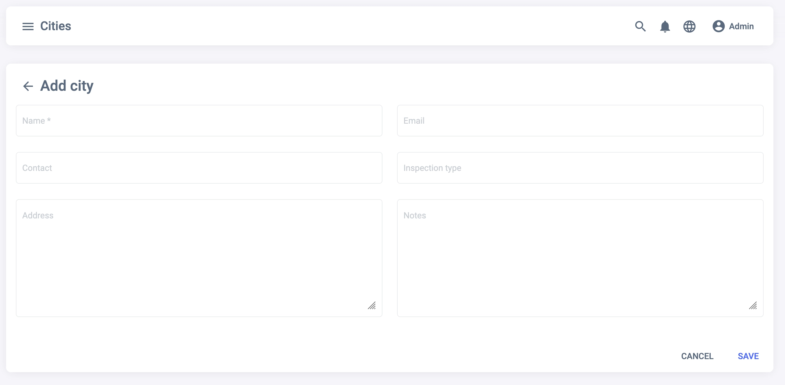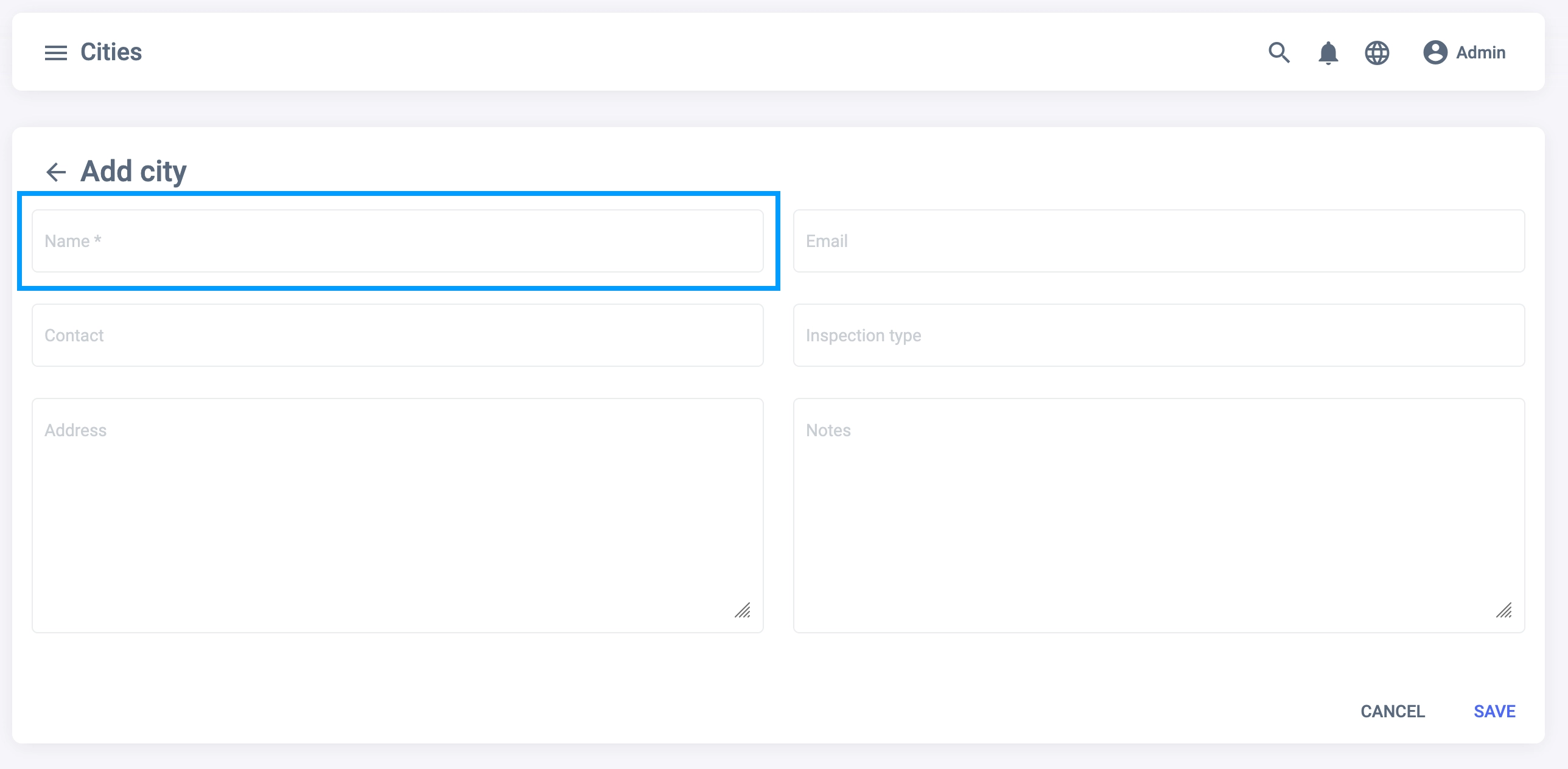 You will be redirected to the city creation page. Fill in the fields with the city information.