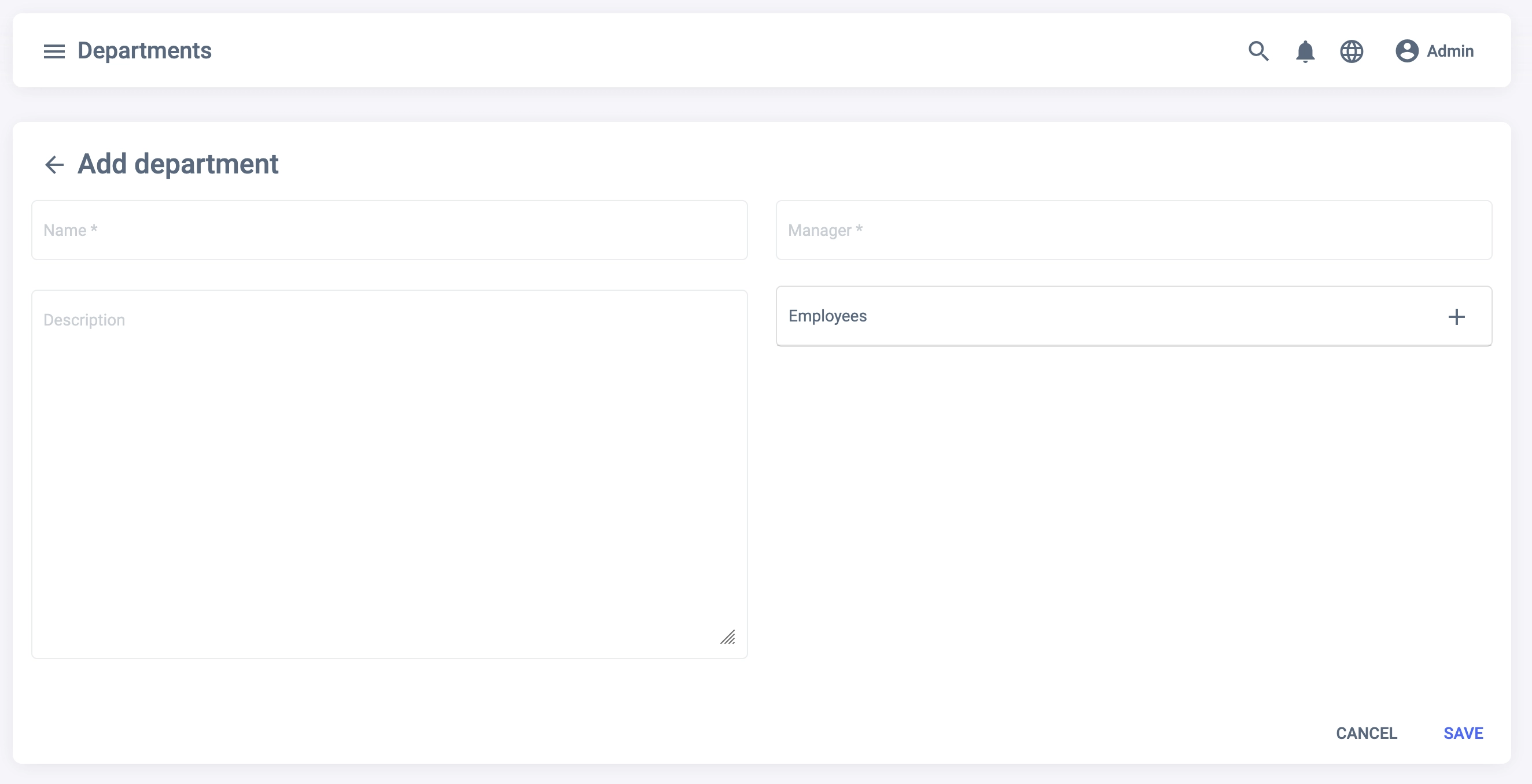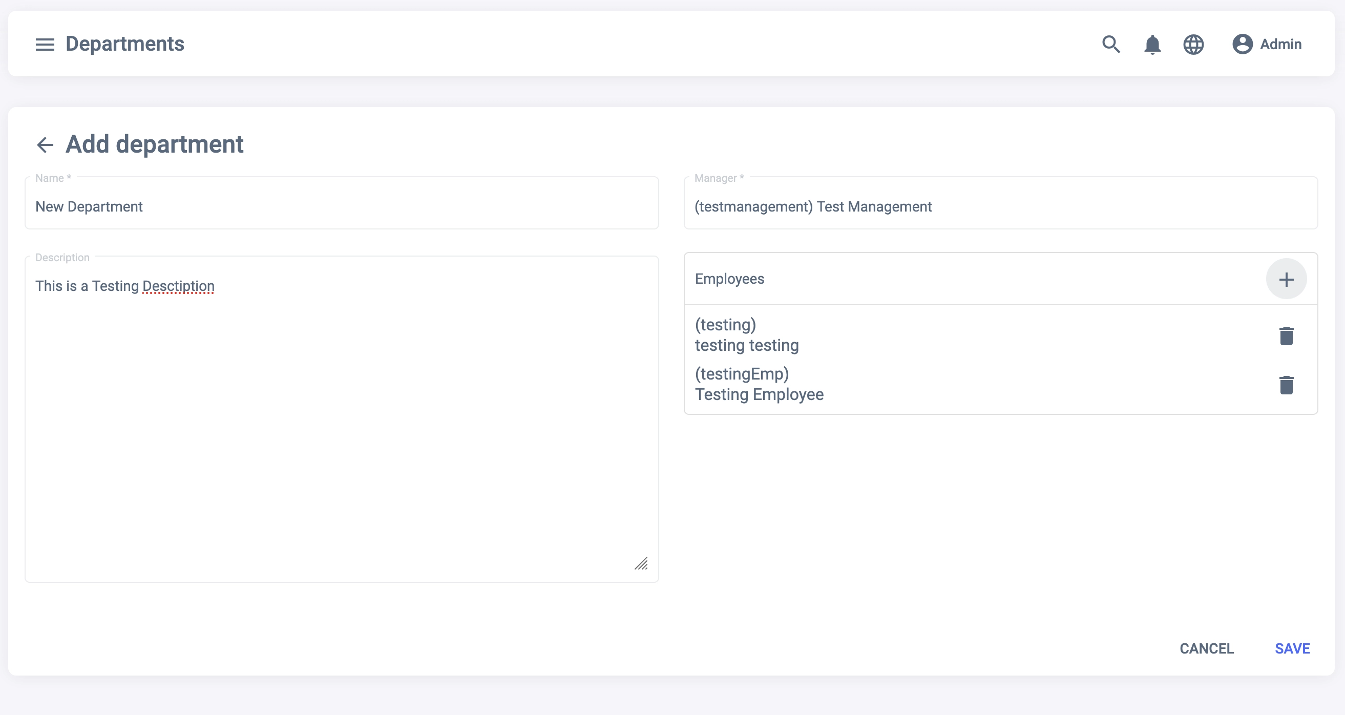 Departments are Groups of Employees inside your organization. This helps to manage which works are managed by which group of employees. Every Department has a Manager, and when assigning jobs you can choose assign it to a Department instead of a single Employee.